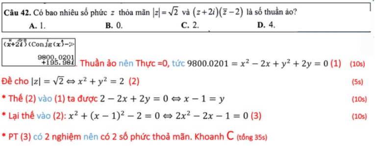 Trong đề minh họa có câu 42 và câu 49 là giải dược bằng máy tính casio. Mời bạn theo dõi